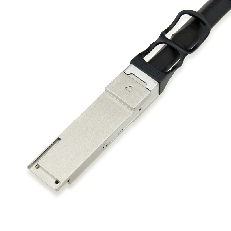 This QSFP+ to 4x SFP+ copper DAC cable is a 40GBase QSFP+ hybrid passive cable. A side is a QSFP+ connector, B side is 4 SFP+ connectors. It’s an application for link with QSFP+ port on 40Gb/s rate switch or host and feed up to 4 upstream 10Gb/s switch or host.