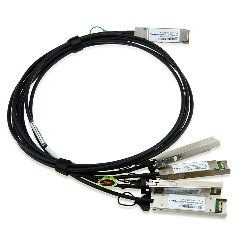 Cablexa has this QSFP+ to 4 XFP Breakout Copper Cable, 1 Meter, Passive - DAC-QSFP-4XFP-P1M in stock and ready to ship. This cable is tested for 100% functionality and guaranteed compatible for outstanding network performance. Now you have a reliable, compatible and affordable means to expand your network while maintaining its integrity.