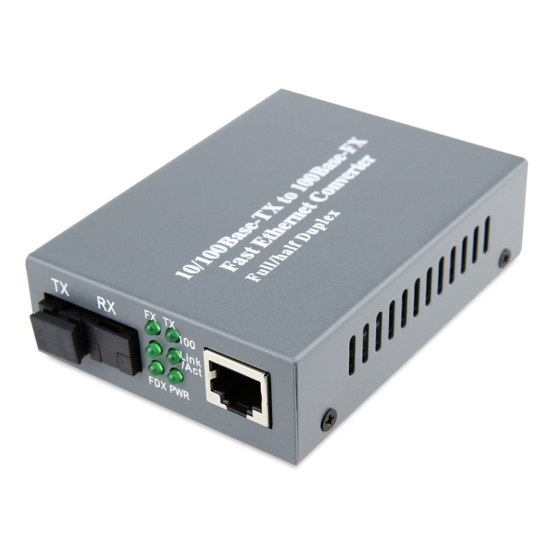 This ethernet media converter can interconvert electrical signals of 10Base-T and 100Base-TX twisted pairs with optical signals of 100Base-FX. It extends the network transmission distance from 100m via copper cables to 120km via fiber optical cable. It enables the data to transmit in two different mediums of electrical and optical networks either by the technology of data link L2 store-and-forward, or by the one of PHY L1 cut-through). It supports transmission in multi-mode dual fiber, single-mode dual fiber, single-mode single fiber.