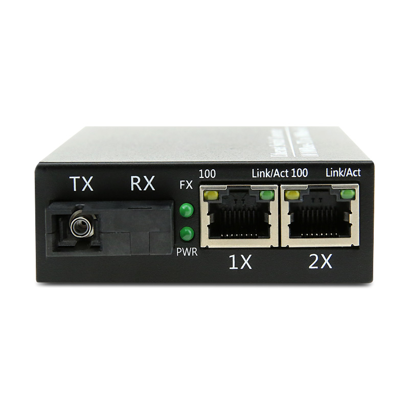 This ethernet media converter can interconvert electrical signals of 10Base-T and 100Base-TX twisted pairs with optical signals of 100Base-FX. It extends the network transmission distance from 100m via copper cables to 120km via fiber optical cable. It enables the data to transmit in two different mediums of electrical and optical networks either by the technology of data link L2 store-and-forward, or by the one of PHY L1 cut-through). It supports transmission in multi-mode dual fiber, single-mode dual fiber, single-mode single fiber.