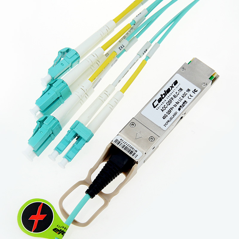 40G QSFP+ to 8x LC connector Breakout Active Optical Cable provide 40GbE systems the ability to connect to 10GbE switches or adapter cards. It provides connectivity between devices using QSFP+ port on one end and 8x LC connectors on the other end. Cablexa currently offers these cables in lengths of 100 meters on OM3 MMF 40G.
