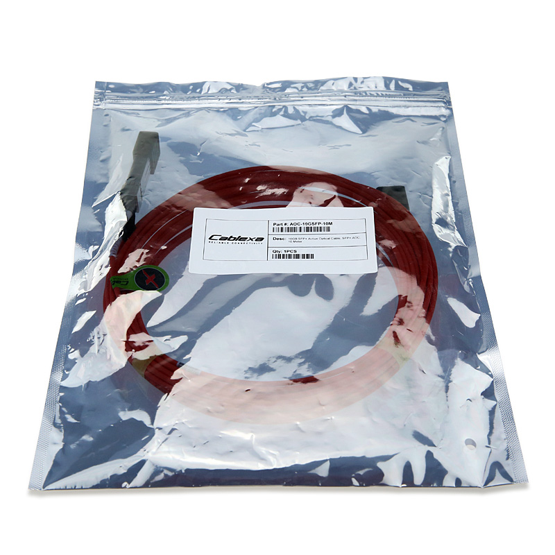 The SFP+ Active Optical Cables are direct attach fiber assemblies with SFP+ connectors. They are suitable for very short distances and offer a cost-effective way to connect within racks and across adjacent racks. Cablexa's SFP+ Active Optical Cable's length is up to 300 meters on OM3 MMF.